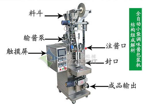 全自動小袋調(diào)味醬包裝機(jī)-辣醬油包裝機(jī)結(jié)構(gòu)組成: