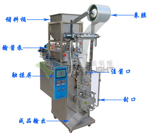 外賣辣椒油包裝機-調(diào)味辣椒油包裝機結(jié)構(gòu)組成: