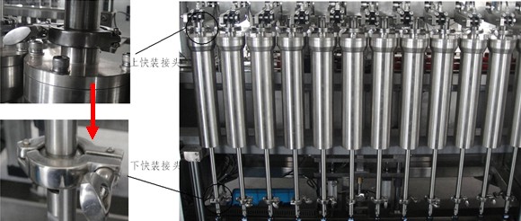 2、單排布置設(shè)計的活塞缸及其上、下快裝連接固定方式,可很方便地將整個活塞缸單元拆下清洗或更換活塞密封件,避免了活塞直接拉出缸體更換活塞密封件時物料的泄漏,造成對設(shè)備的污染。目前只有這種結(jié)構(gòu),才能真正的起到防止更換活塞密封件時物料的泄漏,提高了設(shè)備的安全性和對操作工的保護(hù)。