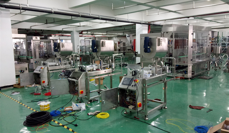 星火臥式雙頭辣椒醬灌裝機/雙頭攪拌醬料灌裝機裝配車間一角: