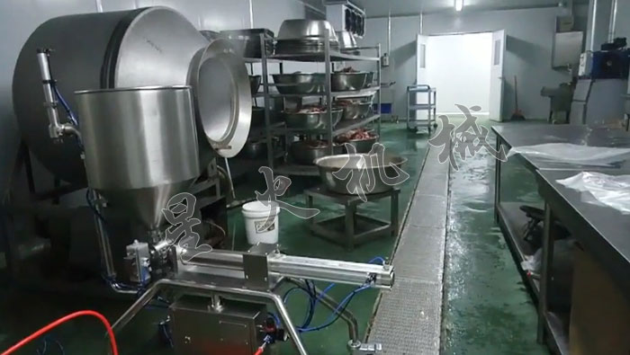 福成肥牛餐飲管理有限公司車間-火鍋湯料灌裝機(jī)-肥;疱佌毫习胱詣(dòng)灌裝機(jī)-生產(chǎn)應(yīng)用現(xiàn)場