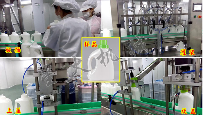 由于,洗衣液主要成分是非離子表面活性劑,去污能力強(qiáng),并且能夠深入衣物纖維內(nèi)部發(fā)揮洗滌作用,去污更徹底。所以當(dāng)前市場上洗衣液開始占據(jù)更大的市場,更受到消費(fèi)者們的喜愛。當(dāng)然為了滿足來自消費(fèi)者們的需求,生產(chǎn)廠家在洗衣液的生產(chǎn)上也需要謹(jǐn)慎,那么就洗衣液桶裝的灌裝和旋蓋生產(chǎn)來說,選擇怎樣的灌裝旋蓋機(jī)才是很合適的呢?