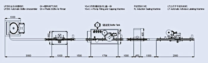 1、LP20O全自動(dòng)理瓶(GP62)圓盤供瓶機(jī) 2、QX-4塑料瓶的凈化氣洗瓶機(jī) 3、YG4/1四泵液體灌裝旋(軋)蓋-體機(jī) 4、FL電磁感應(yīng)鋁箔封口機(jī) 5、LT不干膠貼標(biāo)機(jī)
