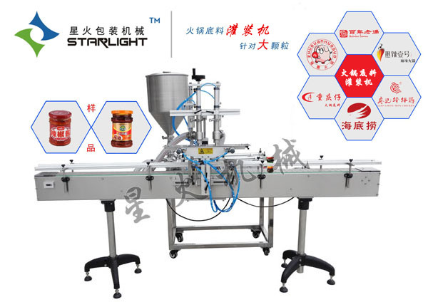香辣醬灌裝機(jī)是星火公司專門針對香辣醬產(chǎn)品進(jìn)行定量灌裝的一種新型灌裝設(shè)備,在使用上分為自動香辣醬裝機(jī)和半自動香辣醬裝機(jī)兩種,半自動香辣醬灌裝機(jī)需要人工放瓶、可以選擇AUTO灌裝和FOOT灌裝,然后用我公司臺式旋蓋機(jī)旋蓋,半自動貼標(biāo)機(jī)進(jìn)行貼標(biāo)。自動香辣醬灌裝機(jī)一般是配合自動旋蓋機(jī),漿糊貼標(biāo)機(jī)等設(shè)備一起使用從而構(gòu)成一套灌裝流水線。